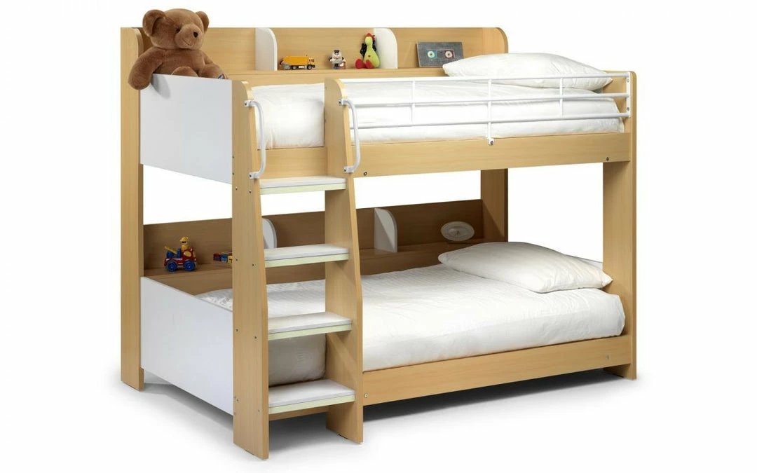 Your children’s bunk bed choice is very important and knowing are bunks like we do we would recommend the Doema to anyone. The most stylish on the market today already purchased by so many happy customers. The safety aspects of this particular model have not been forgotten with it’s sturdy ladder and guard rail at the regulation height. You also buy a place for your children’s toy’s and education items to be placed with the shelving.Â