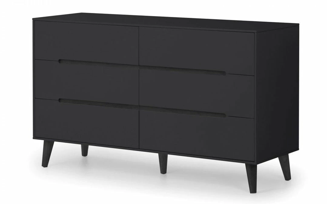 The Julian Bowen Alicia 6 Drawer Wide Chest Anthracite can be purchased alone or with the set it’s design won’t conflict. With the recessed handles and Scandinavian styled legs this chest of drawer is unique. The matt anthracite lacquered finish is effortless to maintain just what you want for the long term.Â