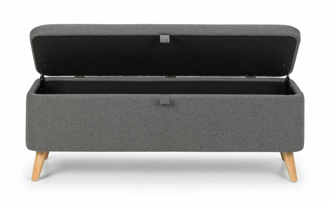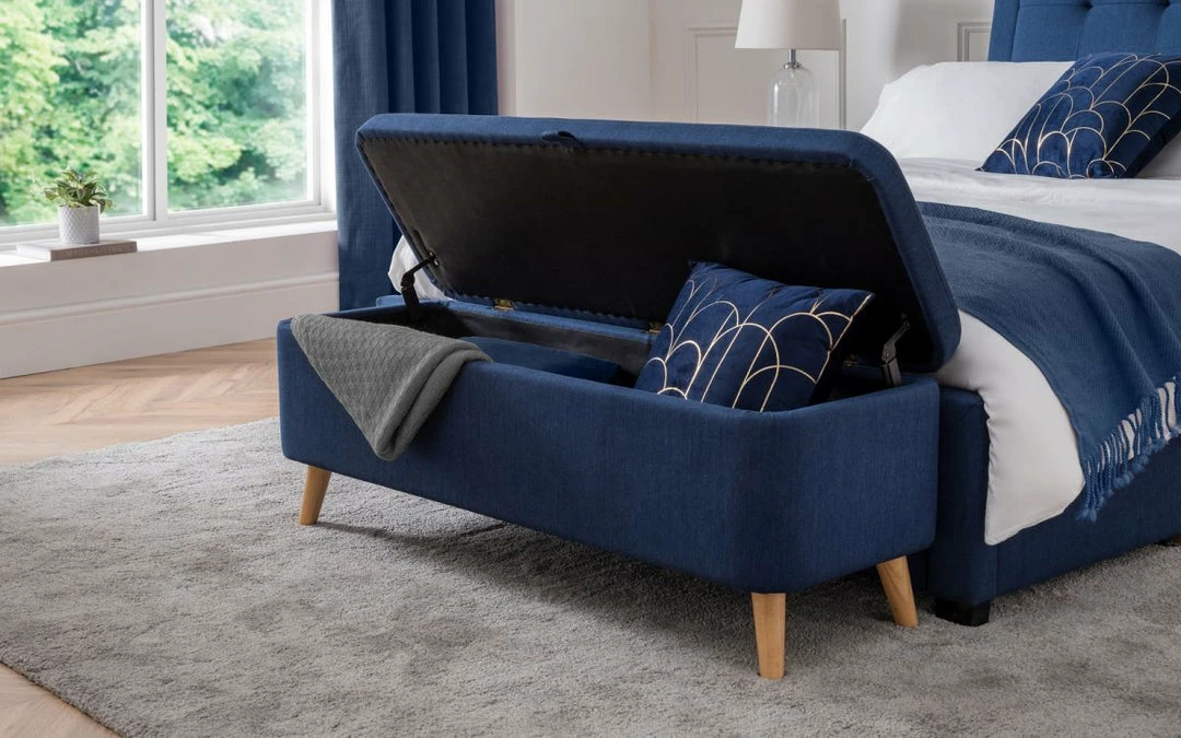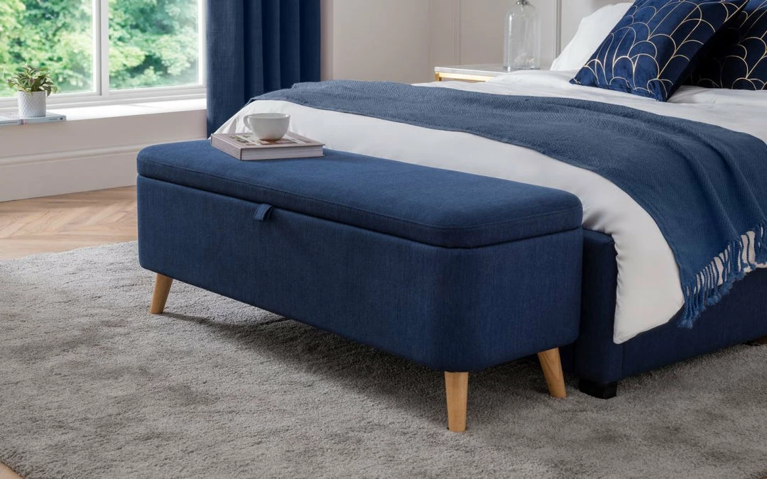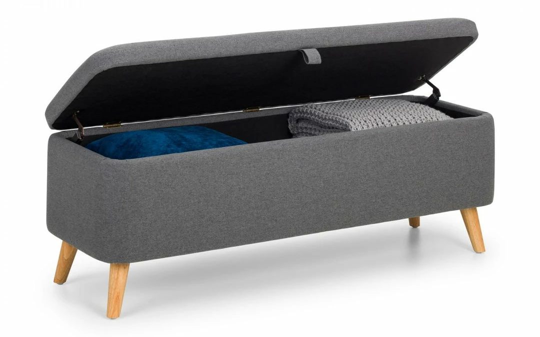 Stylish and modern the Julian Bowen Astrid Blanket Box would be the perfect accessory to match the bed. The upholstery is modern and the Scandinavian styled legs make this storage ottoman unique. Accessing the box is effortless with a fabric handle and hinge set up that’s for the long term.Â
