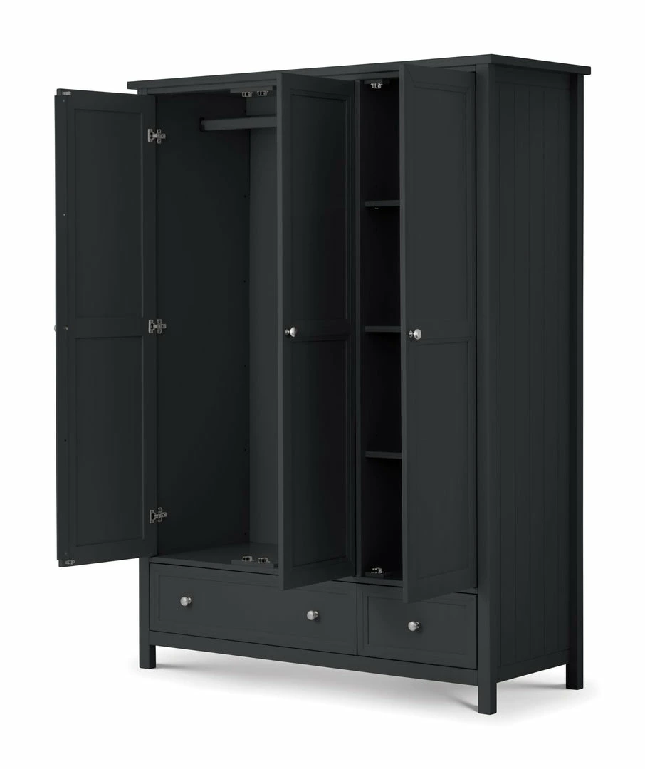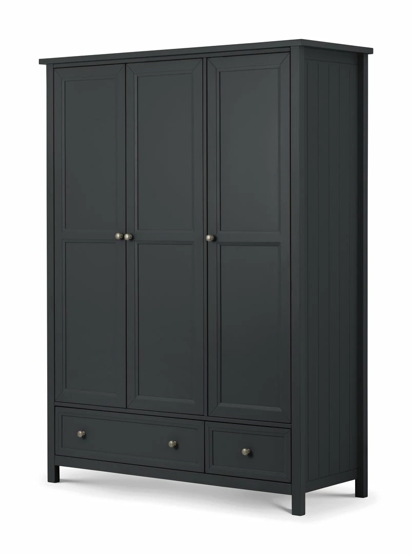 This large Maine 3 door wardrobe with drawers is going to add a stylish and practical product to the bedroom. The solid pine materials strong and robust perfect for long term advantages. The modern style means this wardrobes going to work with the Julian Bowen Maine set or with other contemporary furniture.Â