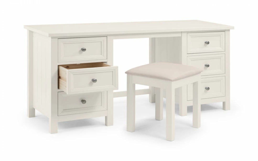 The Maine white dressing table has everything your going to need for adding your make up in the morning and evenings. With the solid pine wood this dressing tables going to stand the test of time. There’s plenty of storage drawers for separating all your beauty products.Â