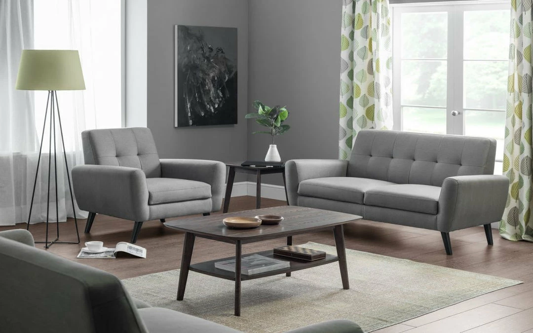 The Monza 2 Seater Sofa is compact and stylish with retro Scandinavian design influences. It is impeccably tailored in a smart, mid-grey linen style fabric. Monza has a seat that is deeper than most similarly sized armchairs, and is consequently incredibly comfortable. Its clean lines and sleek design make it a real focal point for any modern living space. Part of the wider Monza upholstery collection.