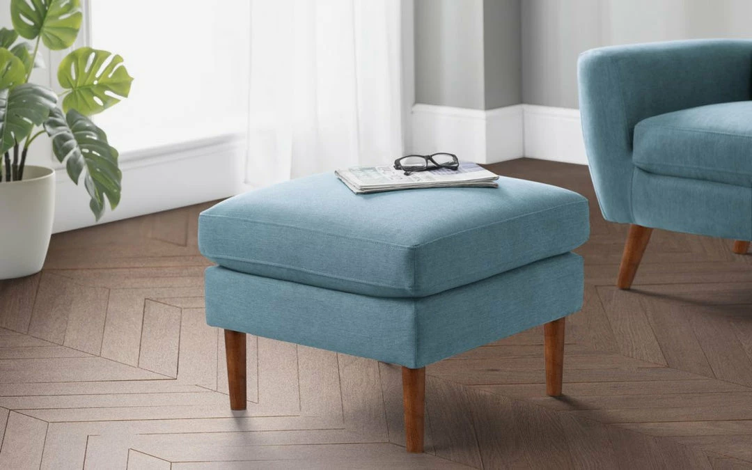 With the wooden frame underneath the blue linen fabric adds longevity values to the ottoman. The straight lines and quality stitching bring a contemporary partner for your sofas and chairs. Add this ottoman to the Monza set providing a modern themed furniture arrangement in the home.