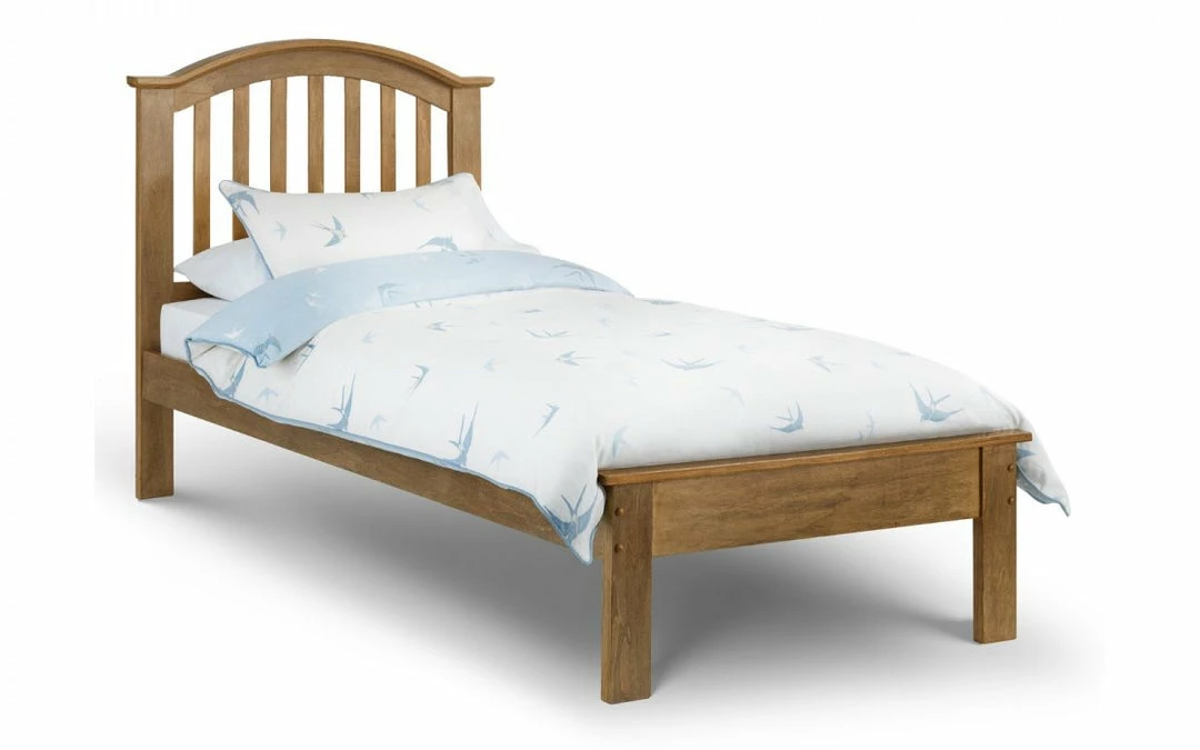 Olivia is a charming wooden bed in a light oak effect lacquered finish, featuring a subtle curved headboard for a refined look that fits with all styles of décor. It’s perfectly suited to create a touch of style to any small sized room A solid slatted base makes for a comfortable night’s sleep and a robust construction. This bed fits a standard UK single mattress (90x190cm).