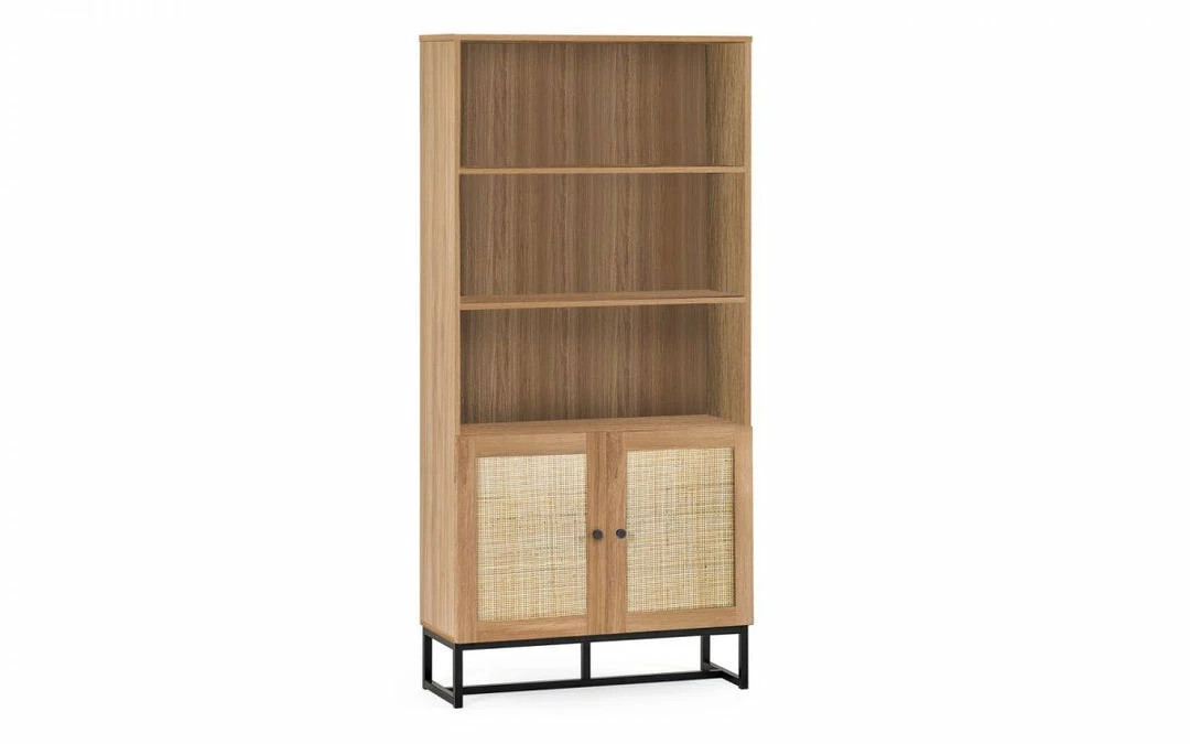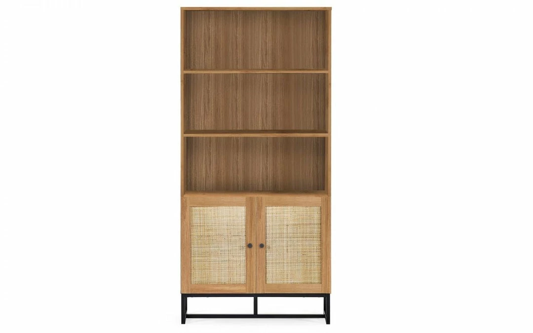 Stunning and smart this oak finished bookcase would add a modern statement to any fashionable home. There’s shelving and cupboards for multiple products and accessories to be placed and stored. The rattan doors make this bookcase unique and also charming for a character piece in the house.Â