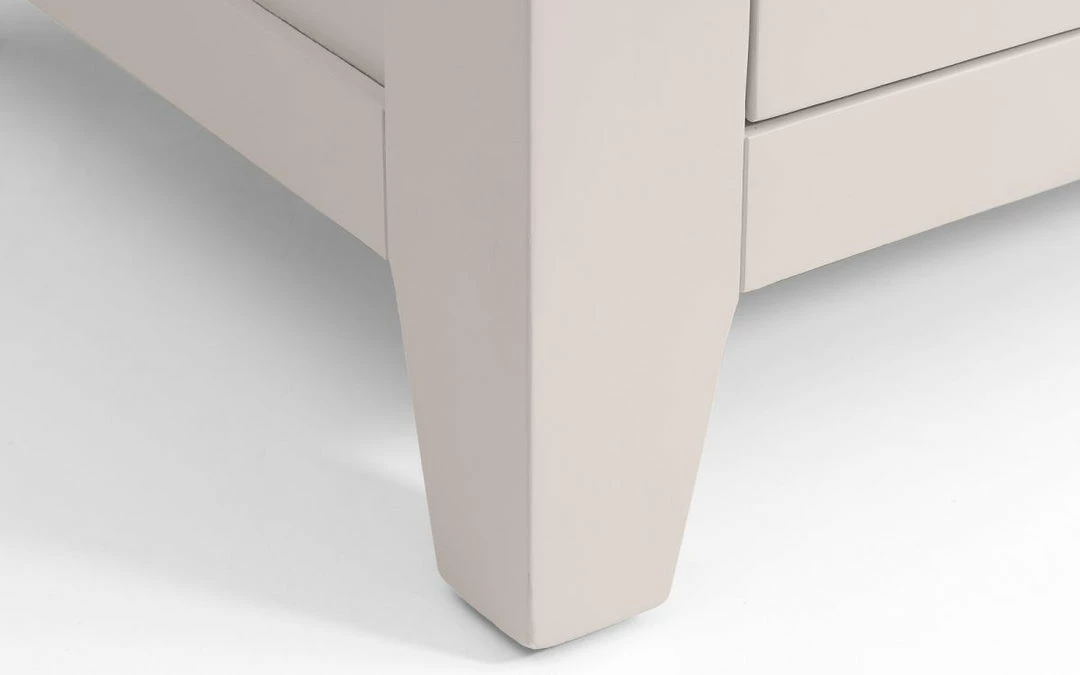 The Richmond bed side table will add a contemporary item of furniture to your bedroom. Coming in a two tone elephant grey painted finish with a lacquered solid oak and oak veneer tops. The handles come in metal with an easy to use design. The 3 drawer has space for those bedroom accessories you need close by. Coming from the Richmond bed room set your getting the bedroom furnitureÂ