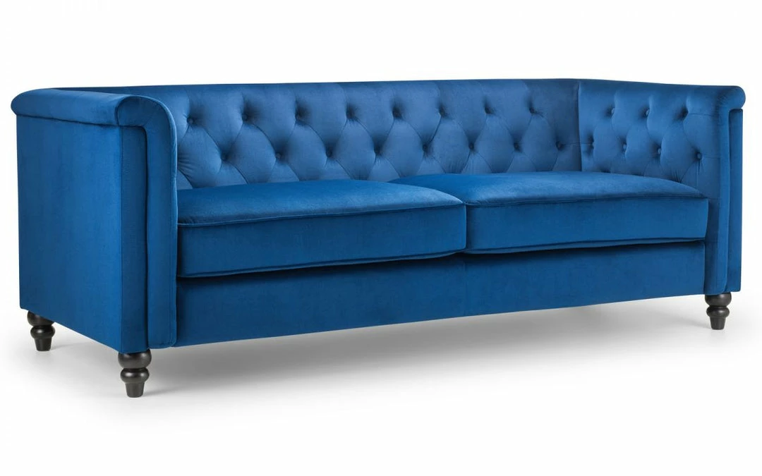 Julian Bowen Sandringham 3 Seater Sofa Blue Velvet