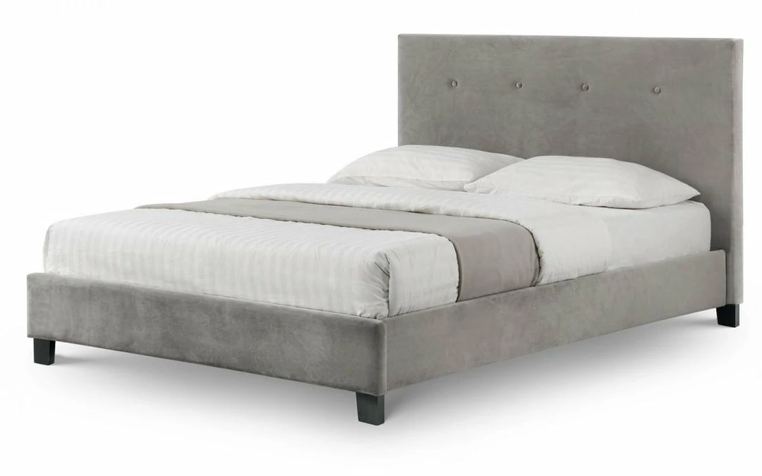 Shoreditch is a stunning bed with modern, clean lines, beautifully upholstered in an exquisite short-pile slate grey velvet fabric. Shoreditch has an imposing, high headboard,  with immaculate button detailing  which adds a real wow factor to any bedroom, while its timeless styling makes it the ideal accompaniment to a wide range of decorative styles. A sprung slatted base ensures supreme comfort and prolonged mattress life.