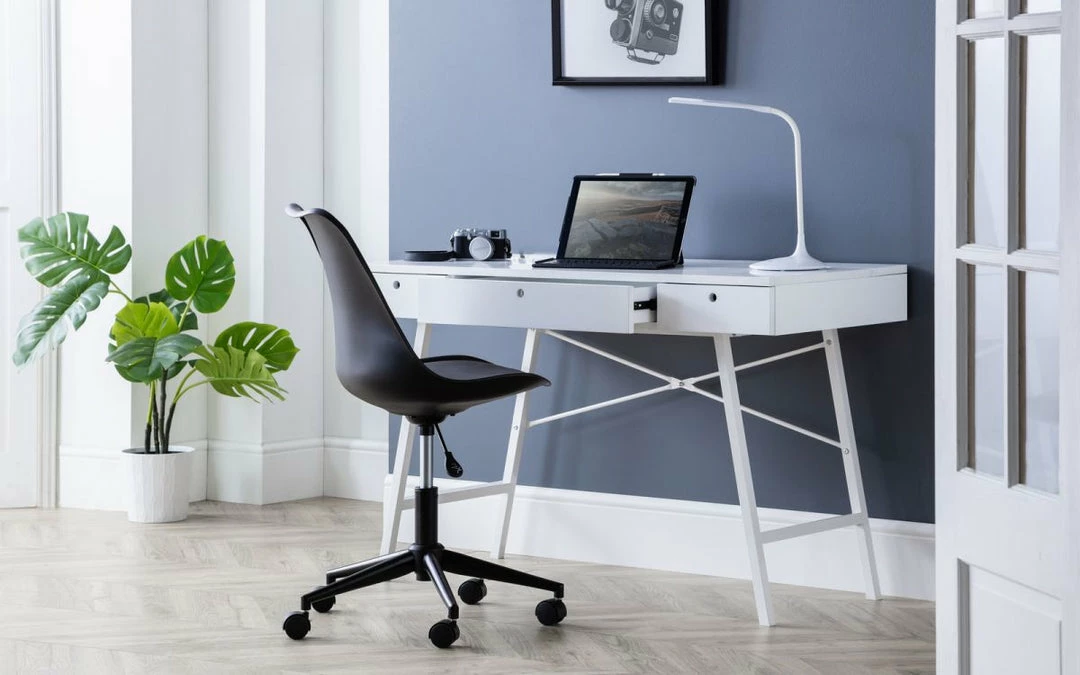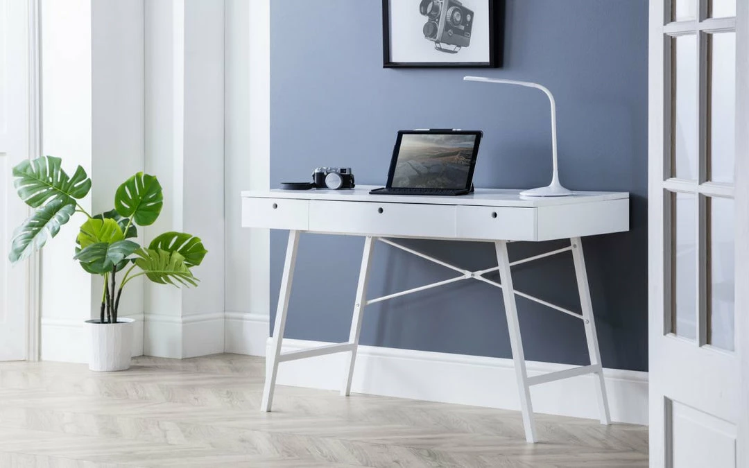 The Julian Bowen Trianon Desk features scandinavian styled legs just adding to it’s stylish presence. With the Lacquer finish this desks easy to maintain and would stand the test of time. There’s plenty of storage space on the top surface for all your laptops and lamps. Designed strong and stable with a back metal strengthening supporter.  Â