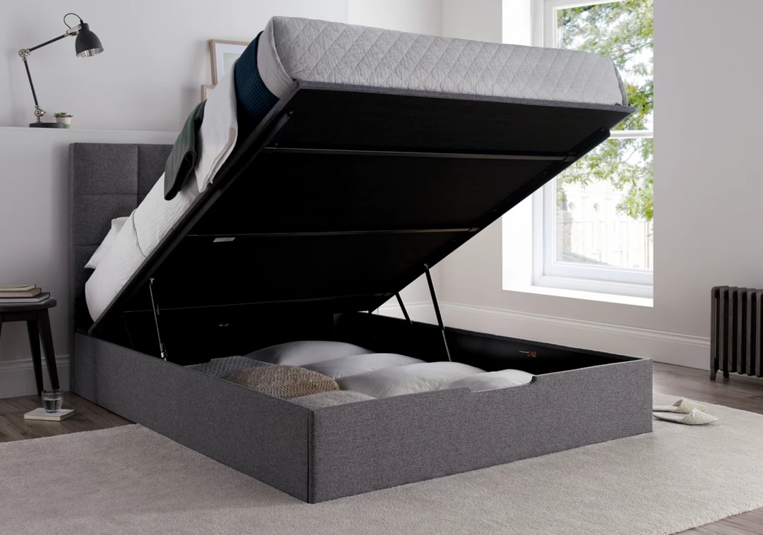 This grey ottoman bed has a modern design and would work well as a storage solution for the home. The padded headboard shows quality and adds lifestyle benefits for a relaxing place to lay back while watching your latest Netflix. With the upholstery grey fabric this ottoman beds sophisticated and contemporary.Â