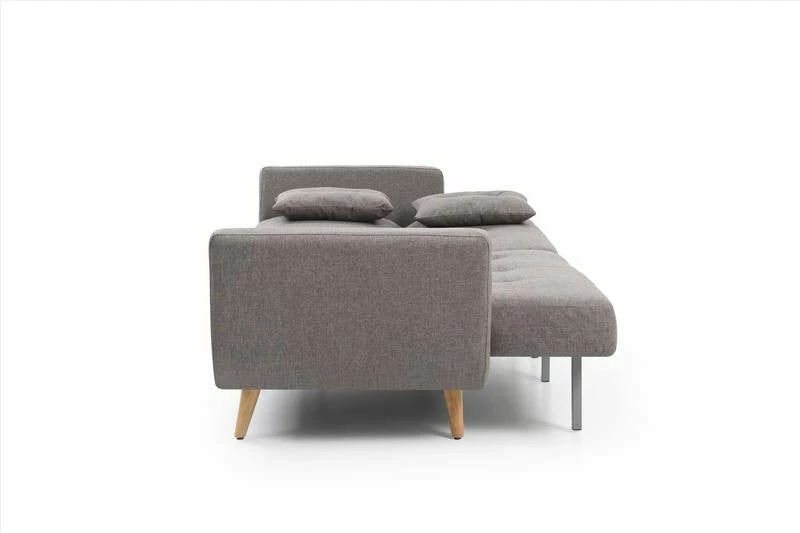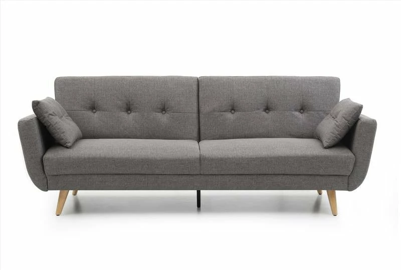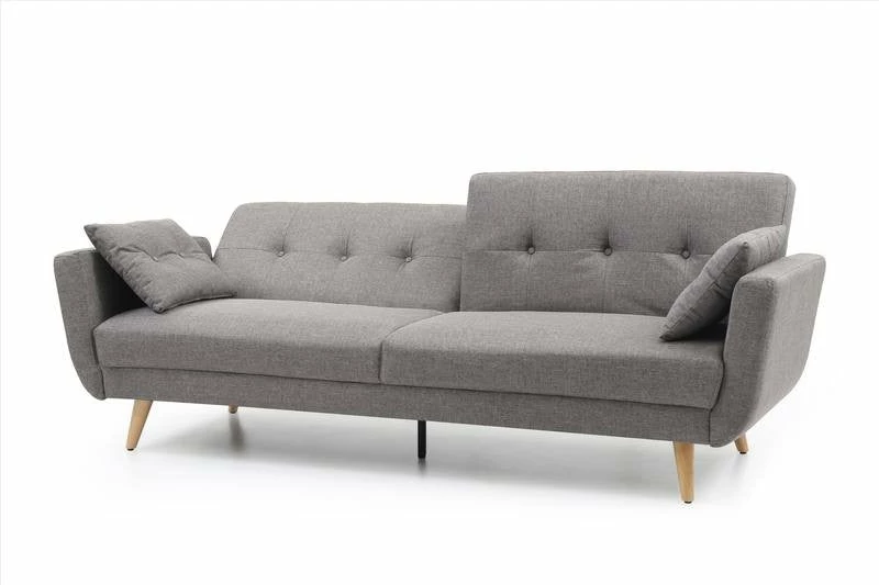 The Bergan 3 seater clic-clac Sofa bed available in a charcoal or Natural fabric with a sprung base and foam mattress. With wooden feet giving this piece of furniture a stylish lookÂ