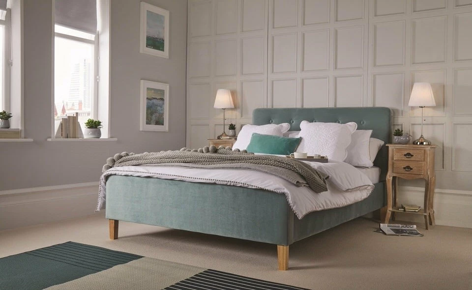This stylish fabric bed is brought to you by LPD Furniture. If you are looking for luxury why not go for the Pierre Bed Frame. In a green fabric upholstery this beds stylish and vibrant. With the elegant button headboard this beds contemporary and stylish presenting a statement in the bedroom. The low foot board allows the light to flow through the bedroom ideal for smaller spaces.Â