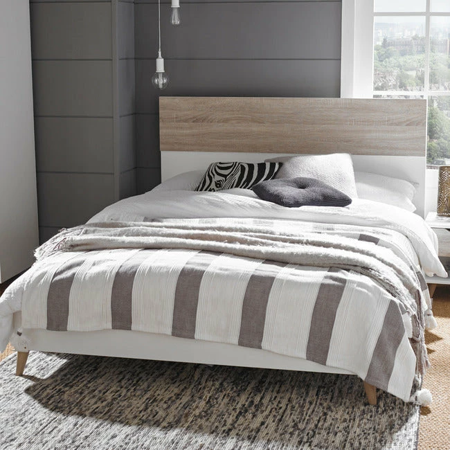 This stylish bed frame would be an ideal purchase for anyone looking for the oak look. Part of the Stockholm Bedroom Furniture Range. Your getting quality at a cheap price with this bed. With a slatted base this would partner with your mattress for a comfortable and ventilating foundation.Â