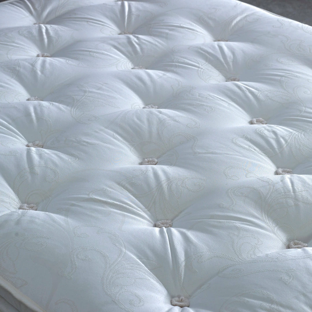 The signature 2000 Pillow Top Mattress features a pocket spring unit. The luxuriously cotton silk and wool fillings are placed for your comfort. Hand stitched boarder and hand tufted by the finest craftsmen this will help keep the fillings in place and allow the sleeper to use the full width of the mattress.Â