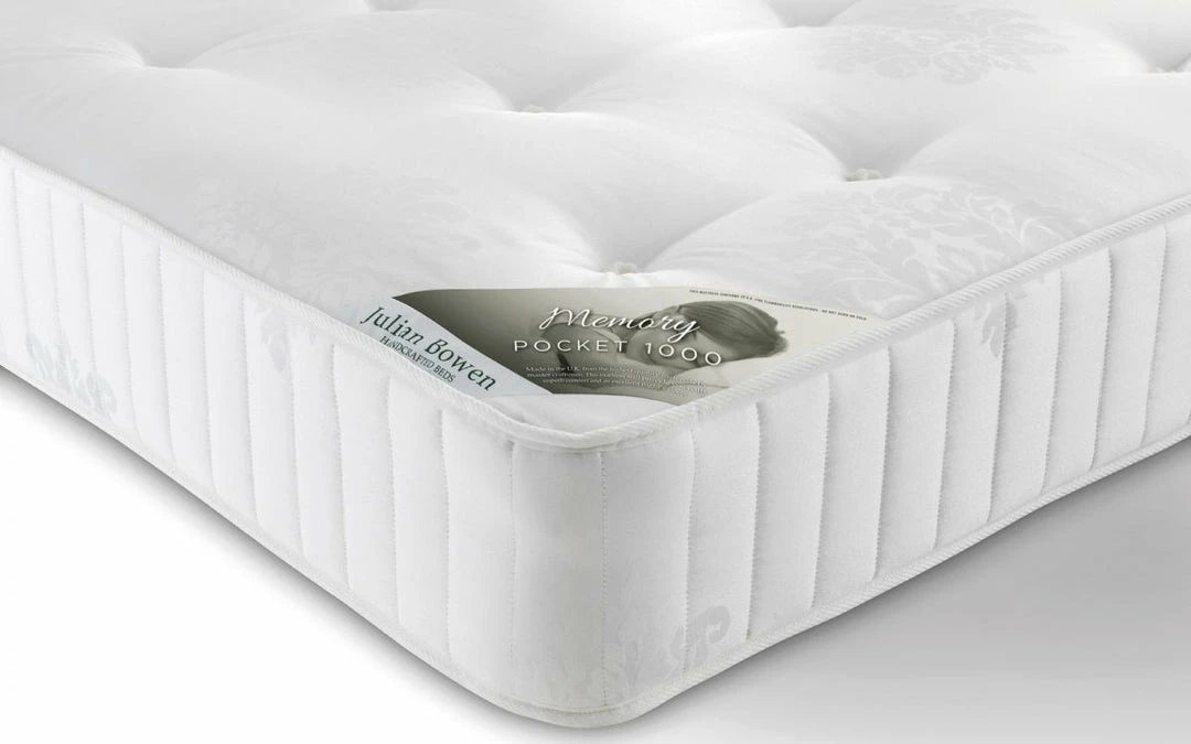 The Memory Mattress features a 1000 Pocket Spring unit with an added 1 inch layer of Memory Foam on the top surface. The Memory Mattress also incorporates a hand tufted luxury damask cover with quilted border and air vents to increase air flow and breathability.