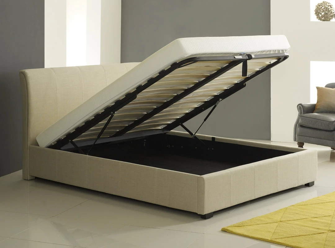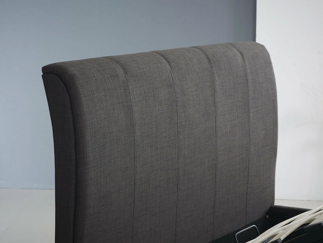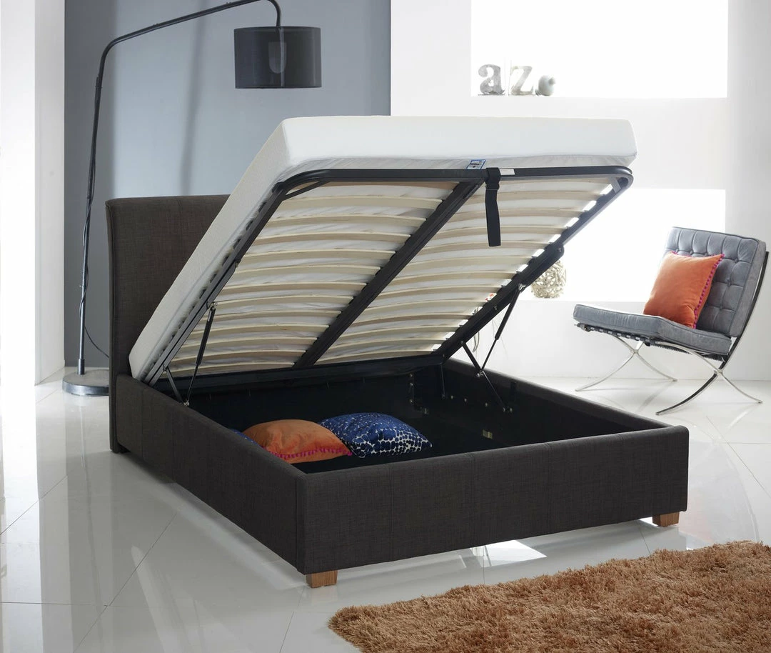 This fabric ottoman bed will add a contemporary space saving item to your home. Take advantage of the storage base adding the perfect place for household items in the bedroom. This model is available in charcoal or stone.Â