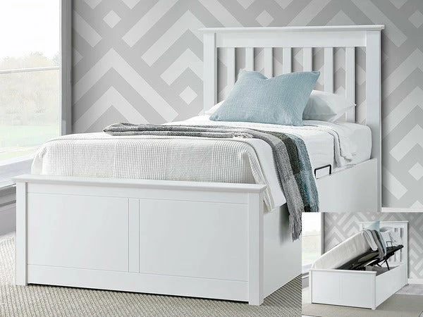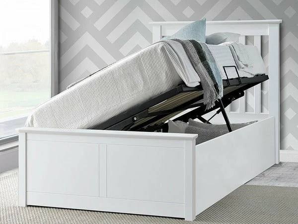 The Francis white ottoman bed has a stylish design for your home. The easy lift will make your life easy so no strain just open from the side. With great space saving features it could become an important item of furniture for you and your family. The material is wood so it’s going to solid and sturdy through the years.Â