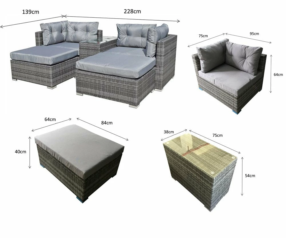Stylish and modern add this nature brown garden sofa set to the garden for the go to place during the summer. The rattan really does make this set contemporary along with the fabric the sets fashionable. There’s plenty of space for everyone with two sofas in the set.Â