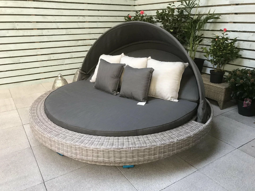 Material – Aluminium frames Heavy duty half round PE rattanÂ