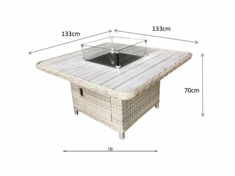 the Signature Weave Meghan Corner Dining Sofa With Gas Fire Pit – Creamy Grey comes with a glass table top. This is perfect for maintaining leaving you more time for relaxing. Designed at just the right size and height making it easy to access your food and beverages.Â