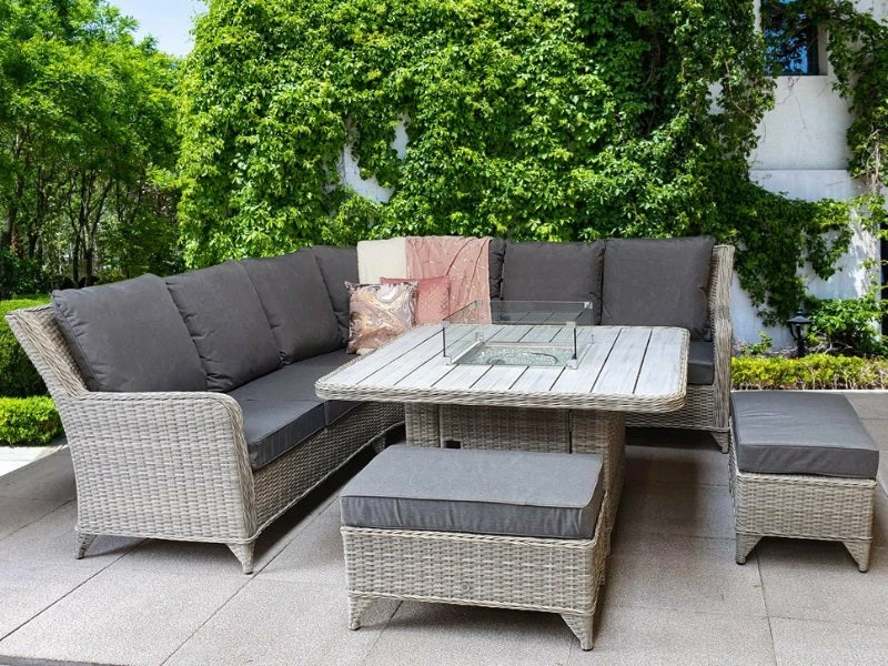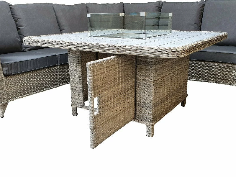 Signature Weave Meghan Corner Dining Sofa With Gas Fire Pit – Creamy Grey