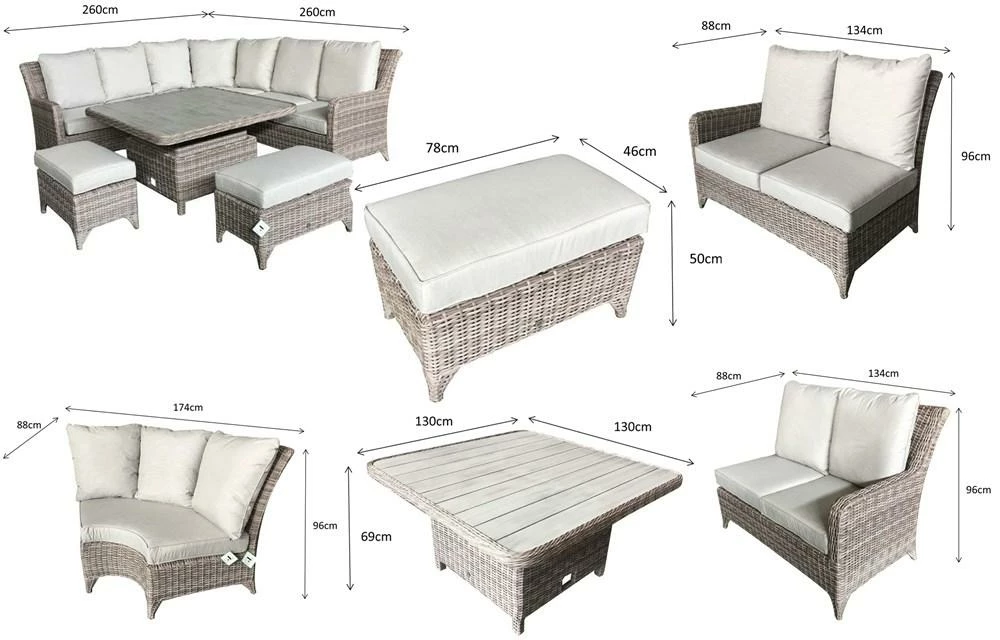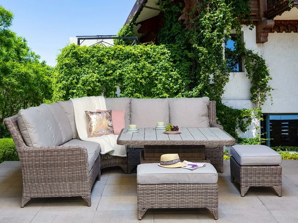 Whether the Signature Weave Sarah Lift And Rise Corner Dining is seen as a garden buy or conservatory the colours going to work. With a natural shade along with the materials the textures and shades are going to work with others in the area. The corner design makes the most of the space with a slight curve on the L part.Â