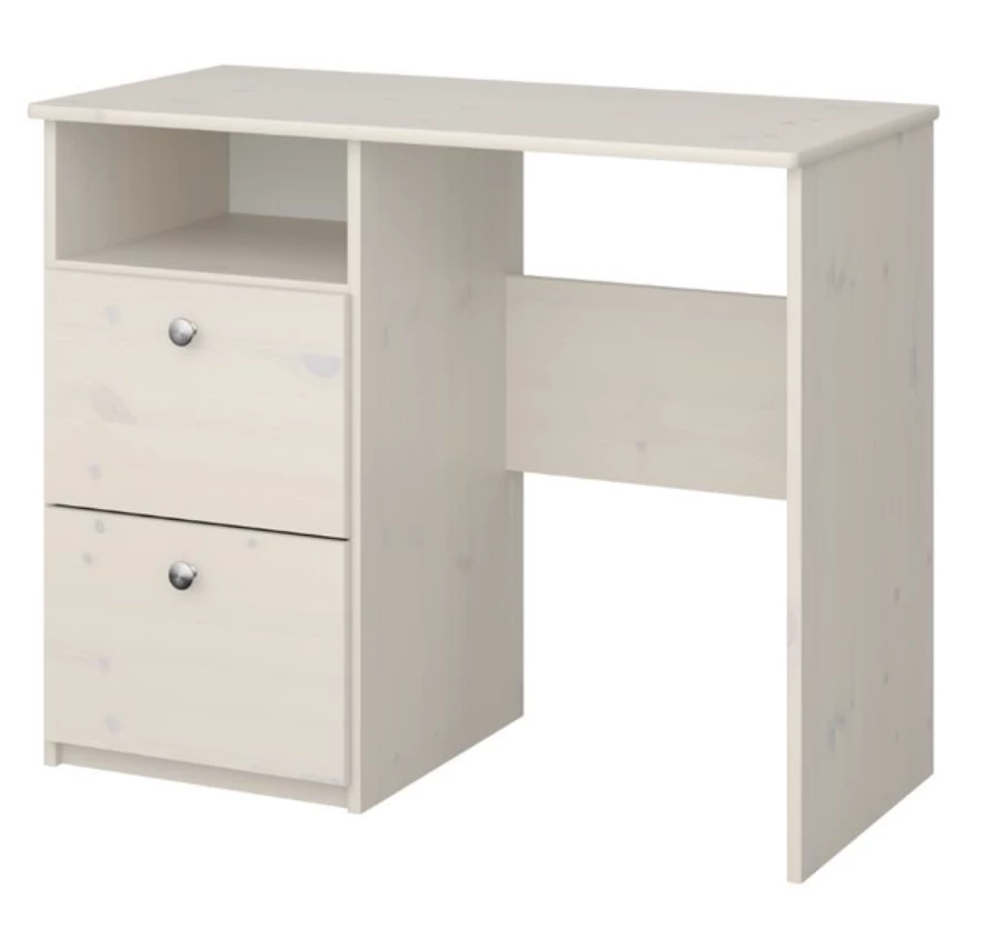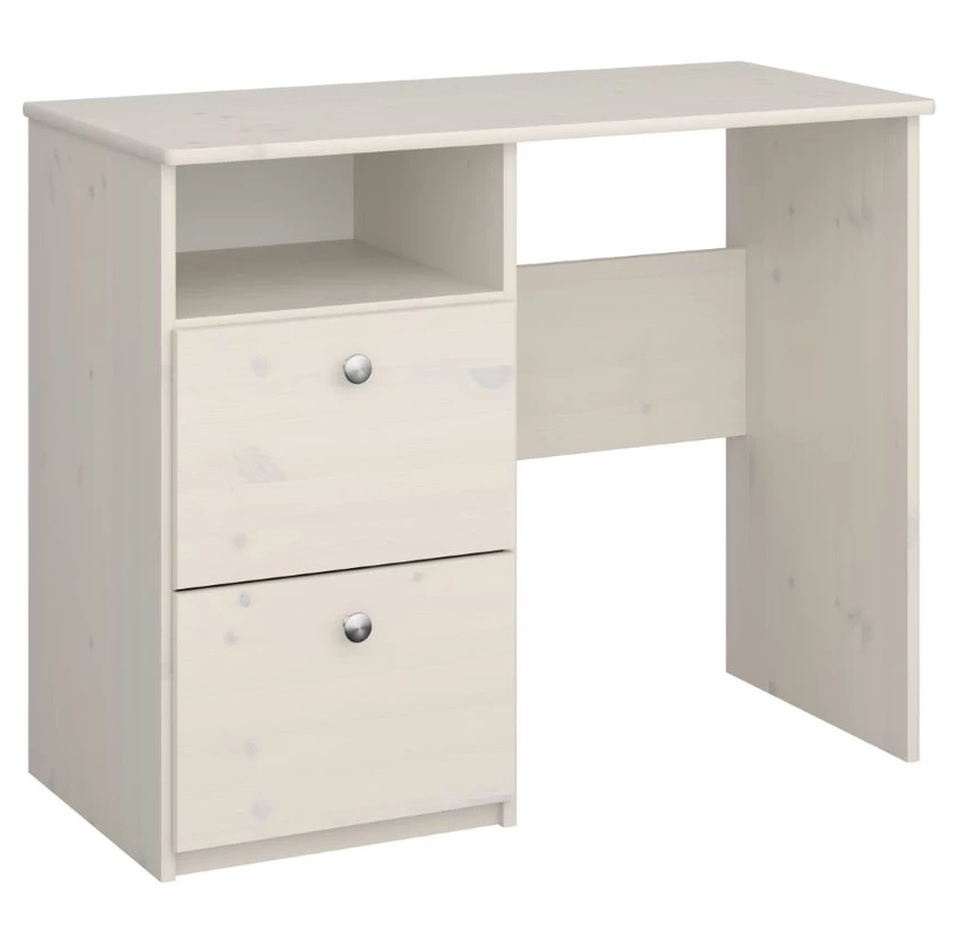 The Steens For Kids 2 Draw Desk White Wash is suitable for both girls and boys with this colour shade. The grain can be seen through the white wash which will bring textures to the bedroom helping match with other furniture.Â