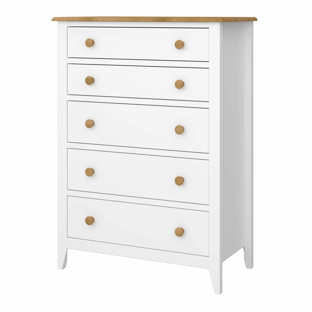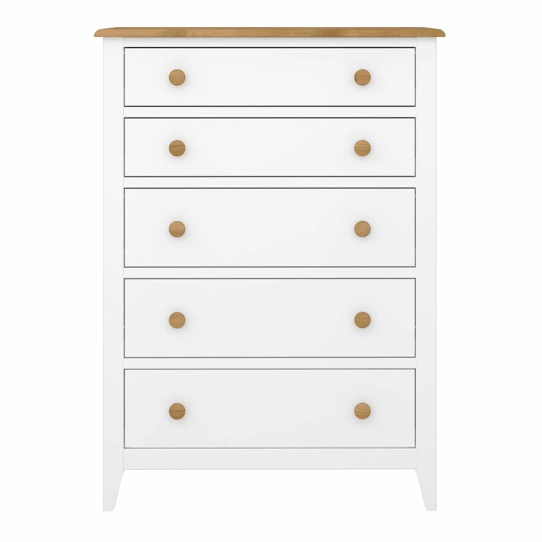 Model – Heston White And Pine 5 Draw Chest Of Draws