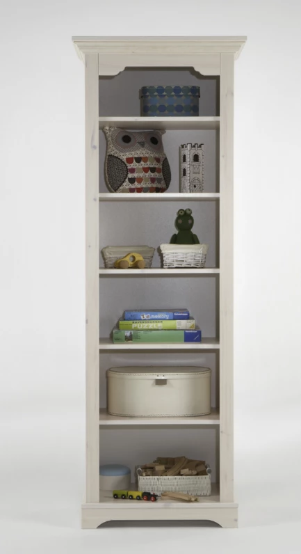 Attractive and charming this white wash book case could be the best accessory for your nursery. Perfect for storage and brining colours into the bedroom with the objects placed in side. The size is good with a high presence and with the width of good size for not being to bulky or over powering.