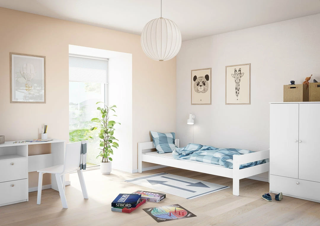 With the Steens Nice Single Bed Whitewash your gaining a solid furniture piece made from MDF wood for an efficient buy. The solid slats bring stability to your child’s sleeping surface and ventilation to the mattress fillings. With the matching foot and headboard tis keeps the bed simple in terms of design.Â