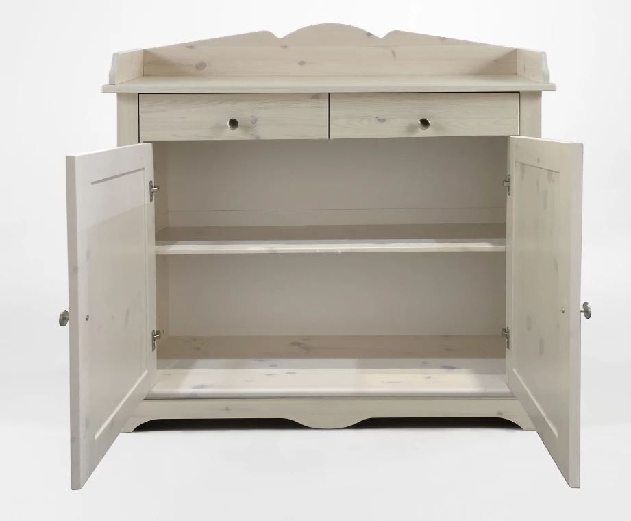 With the Steens Nursery Chest being made from solid pine it’s going to stand the test of time, a buy for now and years too come. The doors are easy to open with the silver handles again longevity has it’s place with the metal handles playing there part. The grounded design keeps the whole unit stable and sturdy so it’s safe for children.Â