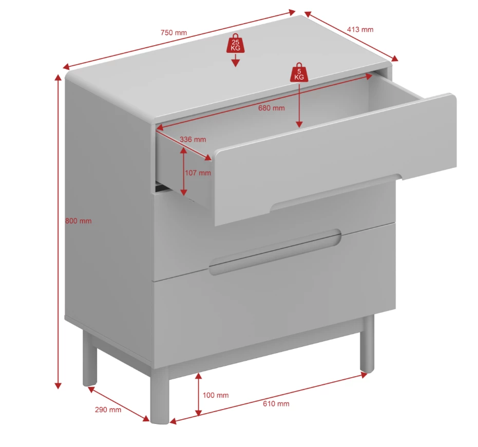 With the Steens Oniria 3 Drawer Chest Blue stability is a key value with the strong stable legs. There’s space underneath allowing light to shine through the bedroom bringing the illusion of space. The size is good not over powering but just right for the storage your child’s going to need. On the delivery day expect this product in flat form which is great for taking to the room of choice.Â