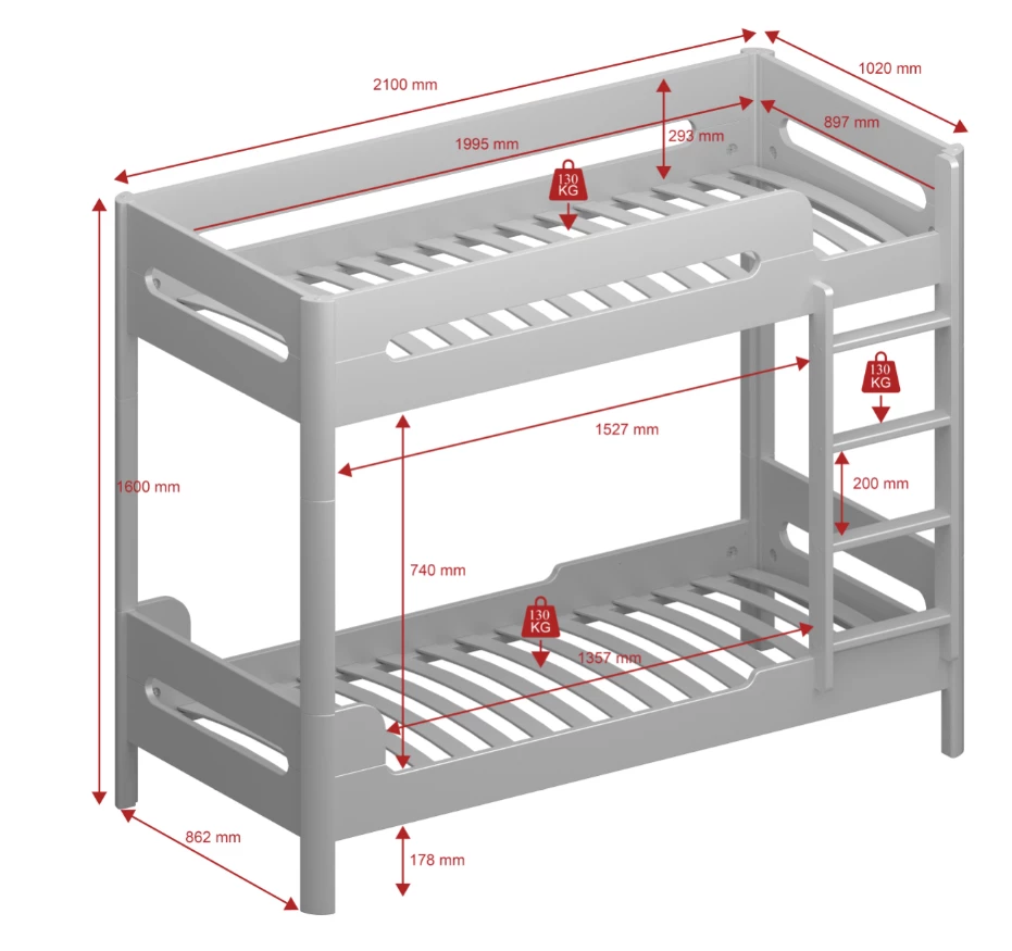 This blue and white children’s bunk has all the makings of an effective bed buy for the room. The stylish and detailed design has qualities such as neutral aspects and strength. The solid MDF wooden material is going to take them right up to there Teenage years.Â