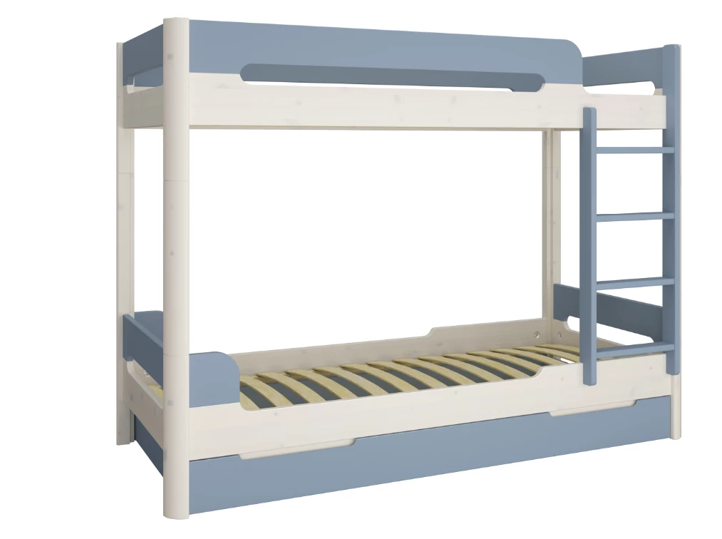 Whether the Steens Oniria Bunk Bed Blue And Whitewash is seen as a girls or boys buy both colours bring options. The pull out bed is going to bring a quality sleeping surface for when friends stay over the night. You could buy with out and just have storage space for bedding and toys. The detailed chamfered edge just adds charm and with the cut out guard rail the beds modern.Â