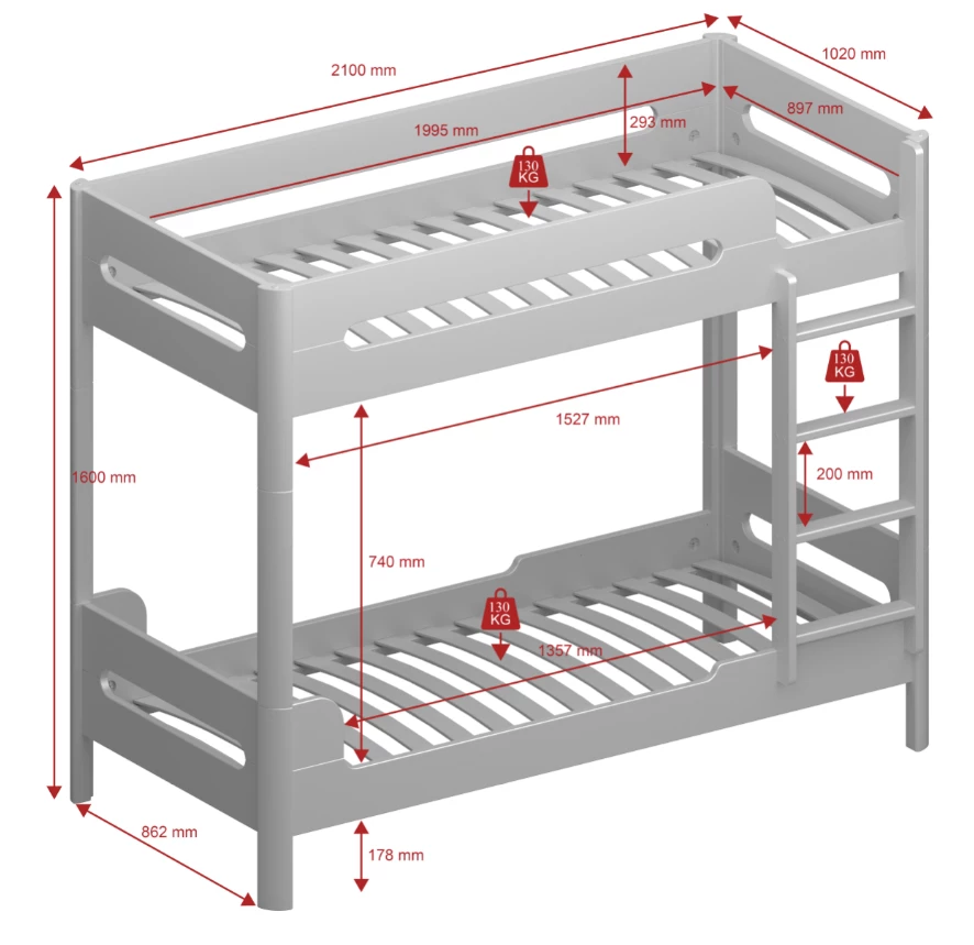 With the Steens Oniria Bunk Bed Green safety has been well thought through with a strong and stable construction. The sturdy ladder and guard rail are at British safety standards height and build keeping there standards high as always. The detailed chamfered edges add charm and set this bunk apart from the rest it’s the little things that Steens do so well. Coming flat packed for easy delivery days leaving you too have a no stress time.Â