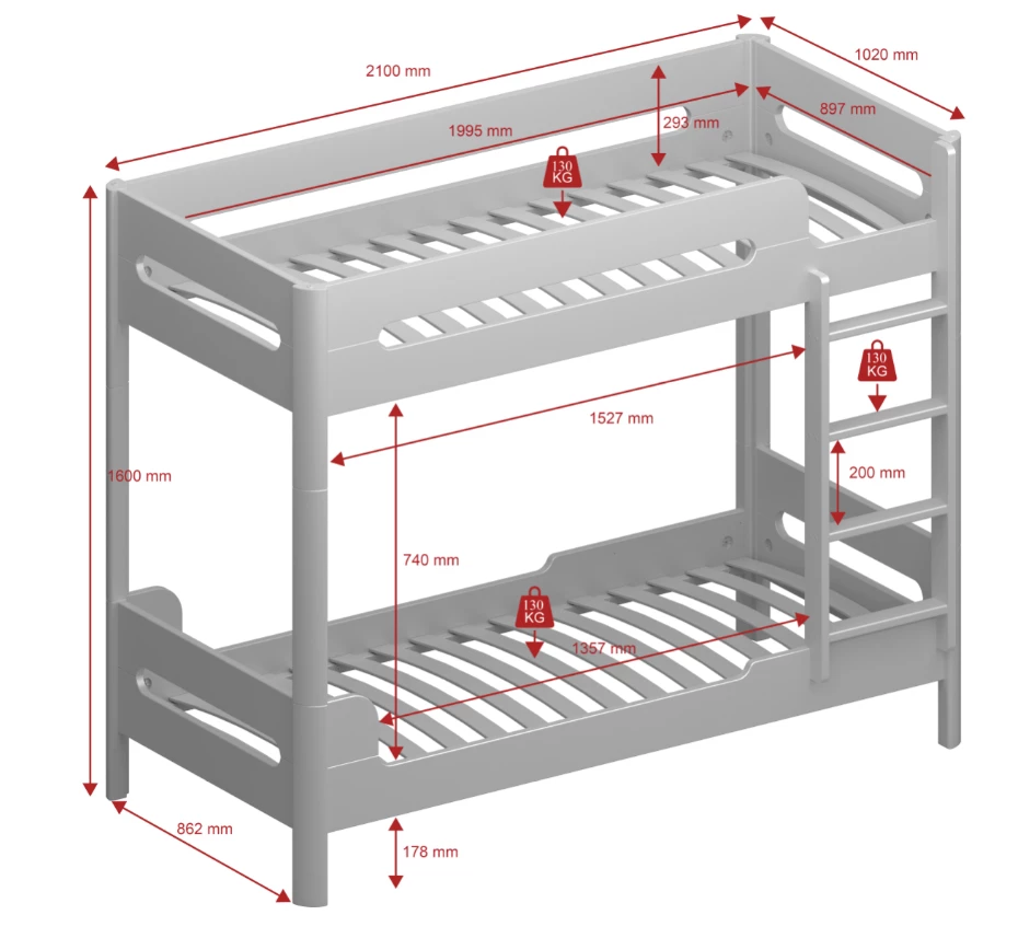 With the Steens Oniria Bunk Bed Pink And Whitewash safety is a priority, the guard rails and ladder are sturdy and strong. The slatted base giving your child the best support and ventilating the mattress fillings. The bunk comes as a flat packed product so the delivery day isn’t going to be stressful and the journey to the room is easy.Â