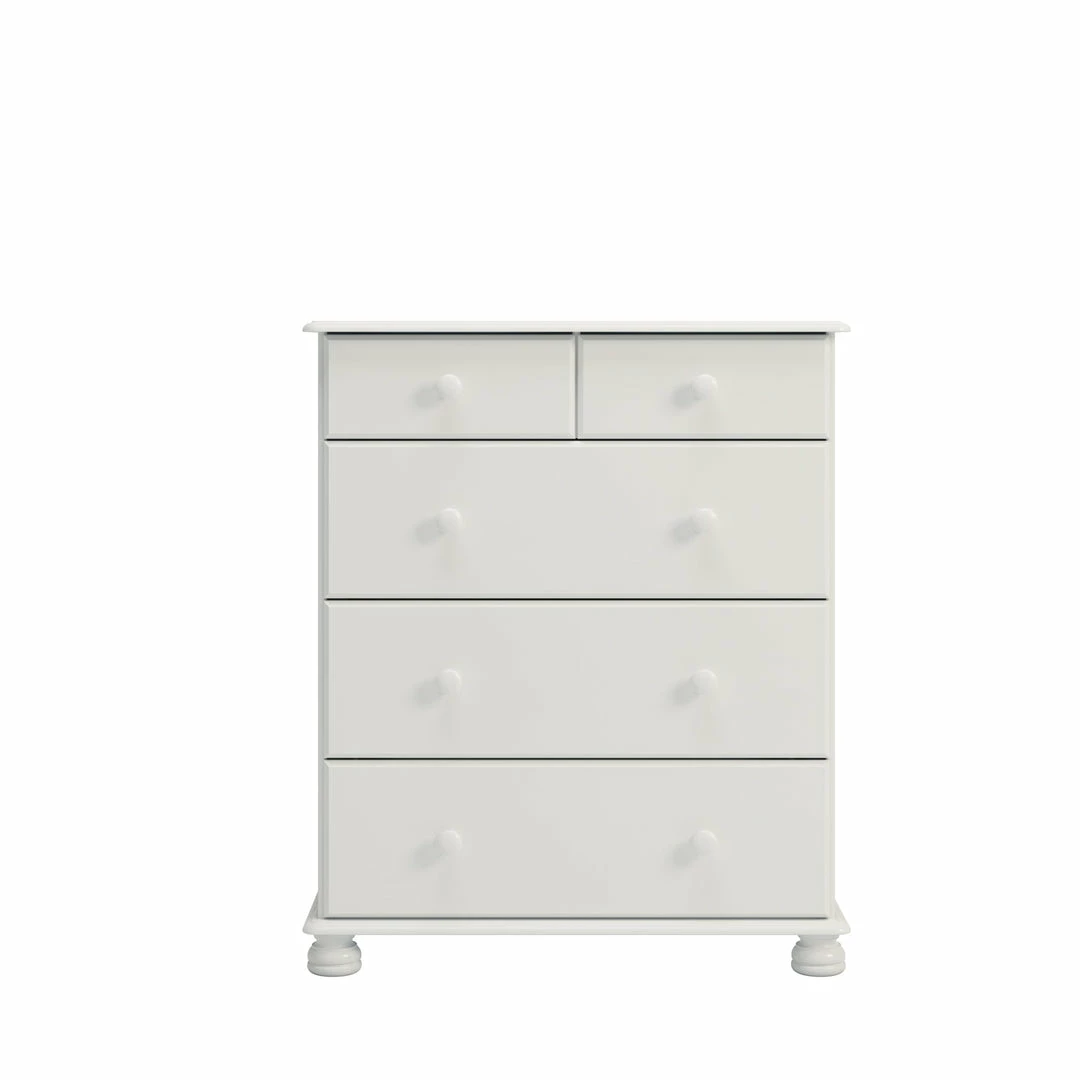 This deep chest of draws will bring huge amount of storage space for all your bedroom items. The 2 + 3 combination is ideal giving you a place to add items together all in one place for easy access. With simple stylish handles making the chest easy to open. Finished with feet that work well with the style. See the rest of the Steens Richmond Bedroom Furniture Collection right here on Better Bed Company.Â