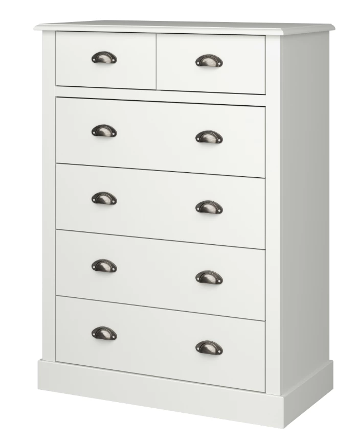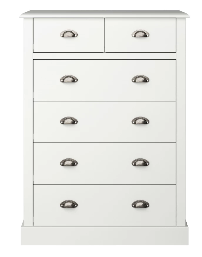 Whether the Steens Sandringham 2+4 Chest White is secured for a large or small area the colour scheme is going to work. There’s a dash of silver from the metal handles which is great for mixing and matching with other decor. The space inside the draws could hold a large selection of garments and clothing giving plenty of options.Â