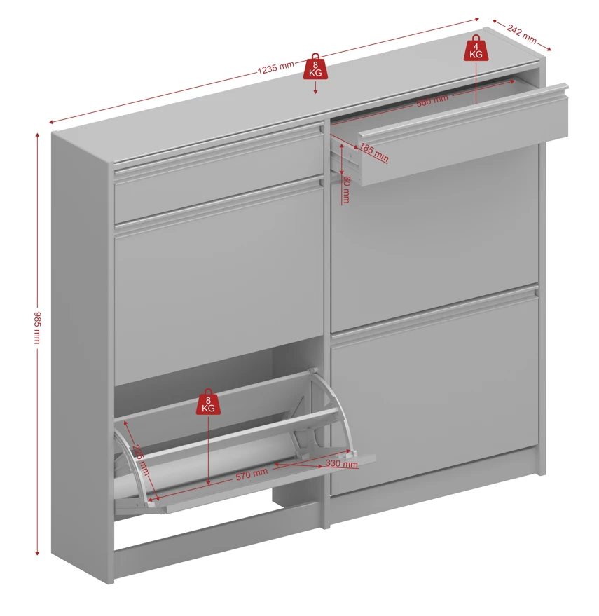 With a stable and reliable design this chest will stay in place attach to the wall if well loaded for safety reasons. made with MDF wood this style of material has strength which will bring long lasting values. There’s extra storage space on the top surface which would be the ideal place for ornaments and pictures. This is a flat packed furniture item so is easily dealt with on the delivery day and can be stored ready for use.Â