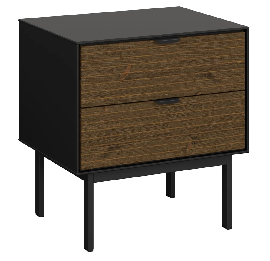 This black and pine bedside table would be a stylish partner for your bed frames and mattresses. Designed with textures, tones and neutral aspects coming from the black and pine colours. Separate your small products with 2 draws this well help order the bedroom and keep things organised.Â