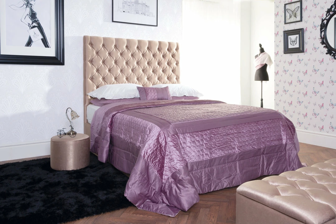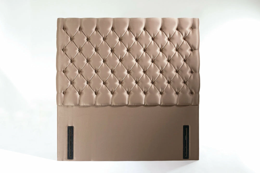 This button headboard could be a main feature in any bedroom. The padding is is in a diamond shape attention to detail is apparent on this particular swanglen headboard. Sit back a relax during the evening enjoying the comfort of the fillings. The floor standing design makes for a sturdy headboard that fixes easy to back of the bed. Available in a large selection of colours and textures that could work well with existing furniture items.Â
