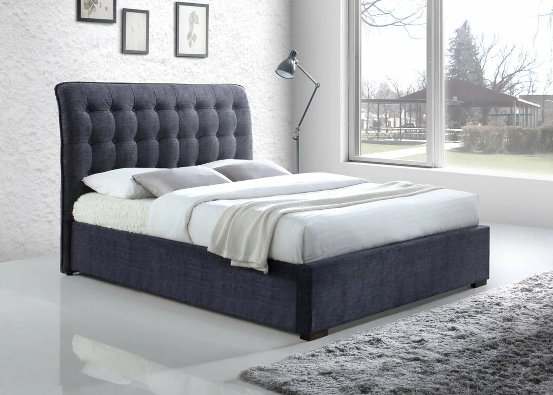 Sophisticated and modern this dark grey bed frame would be an effective buy for any stylish bedroom. The button headboard is well padded and has a slight curve this sets the bed apart from the rest on the UK market. With the dark grey upholstery this beds contemporary and easy to maintain.Â